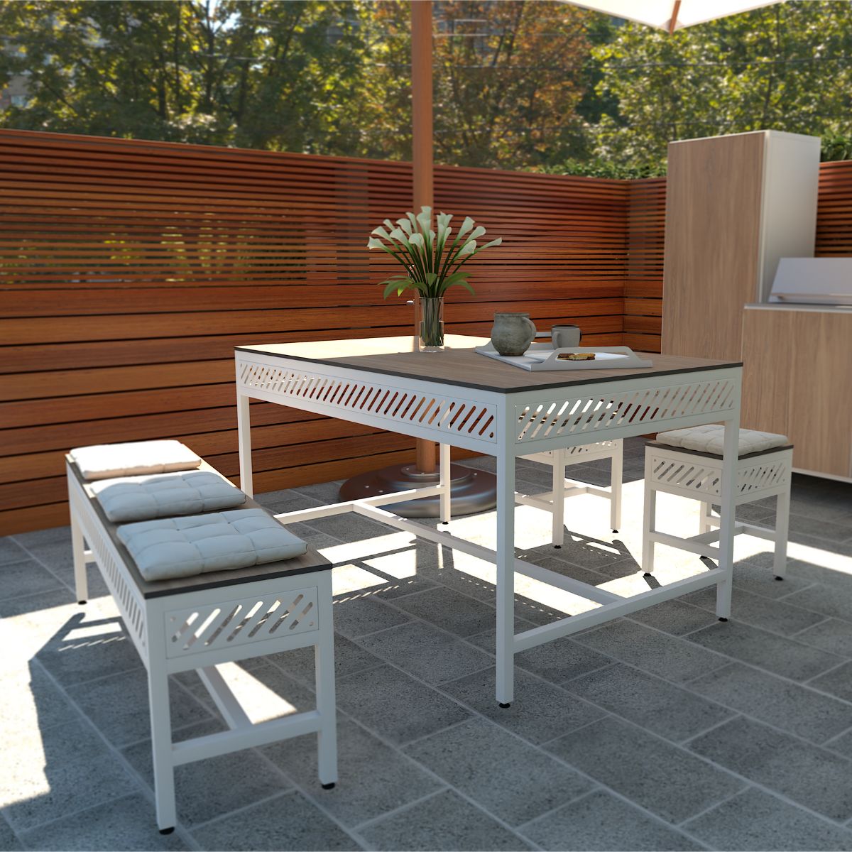 A place to gather, to share, to stay. Our outdoor tables combine clean lines and solid materials, built to resist and designed to fit. Available in different sizes and finishes, they adapt to every setting — from compact corners to large open spaces.